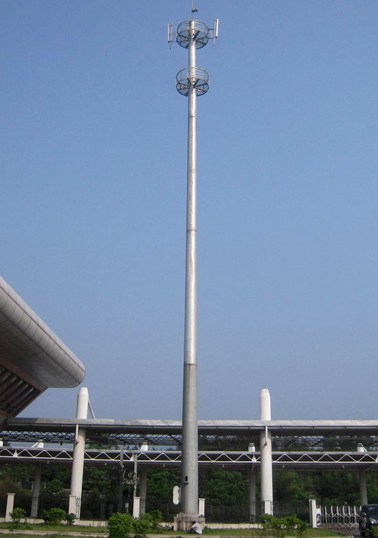 獨管塔(通信獨管塔)是一種實用新穎鐵塔,以外表美觀,占地面積小,性價比高,而被廣大建設單位采用。華瑞生產的通信鋼管桿塔占地面積為 9-18m 2 ,塔體采用較合理的節段,通過連接器用高強度螺栓聯接,使安裝方便、快捷,并能適應多種野外較復雜場地的安裝。內置式爬梯與布線方式既能給操作人員提供方便、安全的操作環境,又能使饋線避免日曬雨淋,大大延長了饋線的使用壽命,并且塔體重心不會因安裝饋線而偏移。塔體底部采用雙層螺母固定,該結構可對塔體垂直度進行微調,更有效地確保了安裝精度。