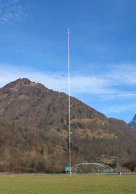 產品簡述: 設計基本風壓為 0.45KN/m 2 ,塔基占地面積為 2 m 2 左右,高度一般為 15m-36m ,按每 3m 一段用外包鋼連接,拉線塔塔身一面的橫連桿作爬梯使用,另一面橫連桿用于固定饋線, 1-2 個直徑為 2.2m 的圓形平臺,天線支架伸出長度可達 1.5m ,方位角度可靈活調整,該塔型外觀新穎,受力合理,塔體重量輕,施工簡便周期短,是一種性能良好,經濟實用的通信塔型,特別適用[1]于城市(市區)及風景區等地。